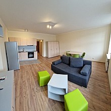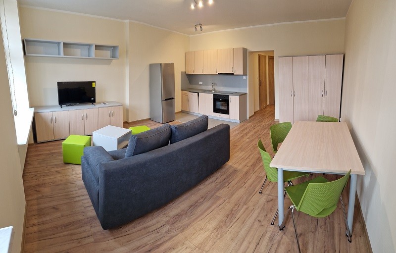 Standard mieszkania: aktualny układ to pokój dzienny + aneks kuchenny 28,12 m², sypialnia 8,56 m², przedpokój 4,61 m² , łazienka 4,49 m². Mieszkanie zostało wykończone i wyposażone w estetyczne i odpowiadające standardom umeblowanie przeznaczone do zamieszkania, odpoczynku i pracy, w sprzęt RTV, sprzęt AGD do aneksu kuchennego tj.: zlewozmywak, płytę grzewczą, lodówkę, zmywarkę, piekarnik, pochłaniacz, dodatkowo akcesoria oświetleniowe, rolety okienne. Łazienka wyposażona w: kabinę prysznicową, umywalkę z szafką, WC, pralkę. Pokoje wykończone zostały panelami podłogowymi. Aneks kuchenny oraz łazienka wykończone płytkami.