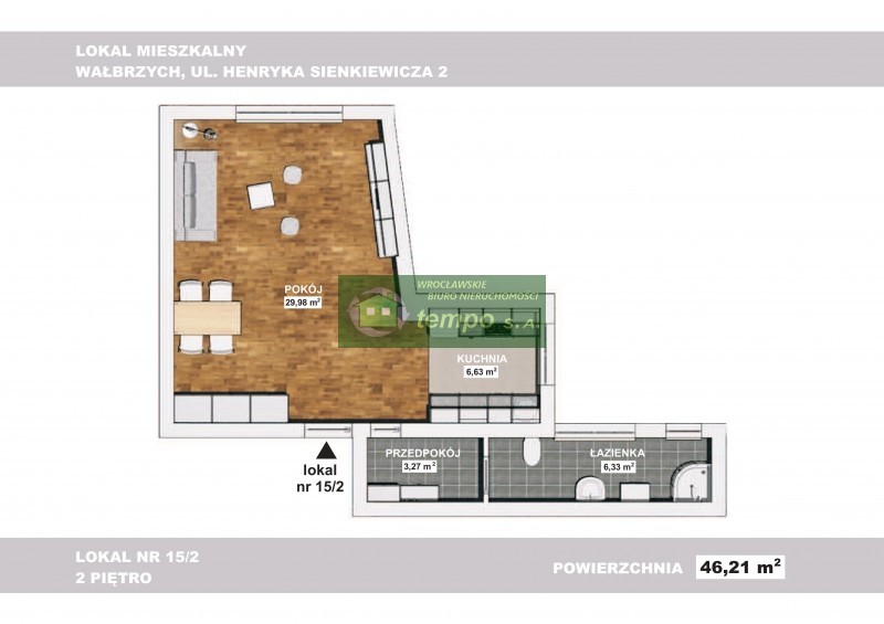 Do wynajęcia mieszkanie o pow. 46,21 m2 znajdujące się w kamienicy usługowo-biurowej z funkcją mieszkalną, położoną w Wałbrzychu przy ul. Sienkiewicza k/Rynku. Mieszkanie usytuowane jest na II piętrze gotowe do używania bez dodatkowych nakładów.