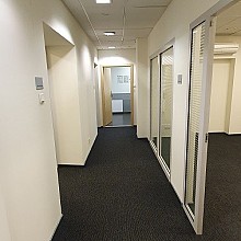 b. I piętro 233 m² to kolejne pokoje biurowe o pow. od 8 m² do 31 m² - łącznie 7 pokoi, kuchnia wyposażona w (szafki, blat kuchenny oraz zlewozmywak), toaleta z przedsionkiem z umywalką, 2 pomieszczenia techniczne dla urządzeń zapewniających użytkowanie lokalu (serwerownia).